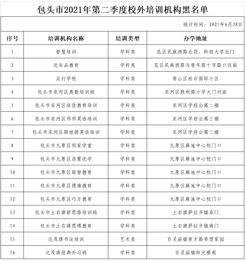 为进一步推进校外培训机构专项治理行动,促进校外培训机构规范办学行为,建立教育行政部门、学校、家长、培训机构和社会共同管理监督机制,365bet取款要多久到账_bat365bet_365bet网站哪个是真的市教育局现将经旗县区教育行政部门正式批准设立、具有办学资质的413家白名单校外培训机构,以及资质不全、办学不规范的16家黑名单校外培训机构向社会公示。