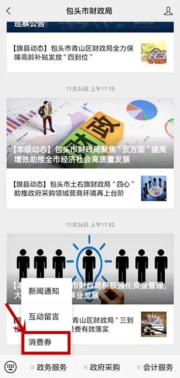 在“政务服务”栏目点击“消费券”进入领取