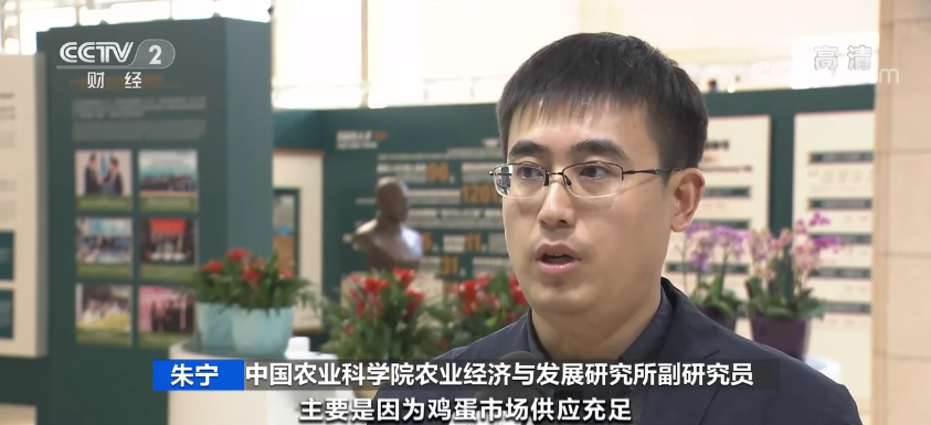 中国农业科学院农业经济与发展研究所副研究员朱宁:去年12月份,全国鸡蛋价格环比去年11月份下跌约5%左右,主要是因为鸡蛋市场供应充足,全国产蛋鸡存栏量约11.9亿只,处于较高水平。