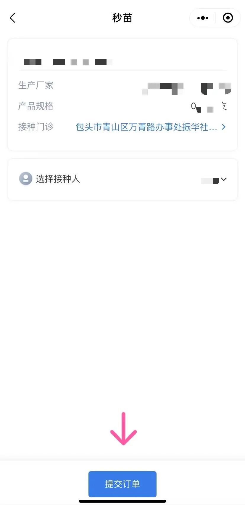 第七步:选择接种人,点击“提交订单”