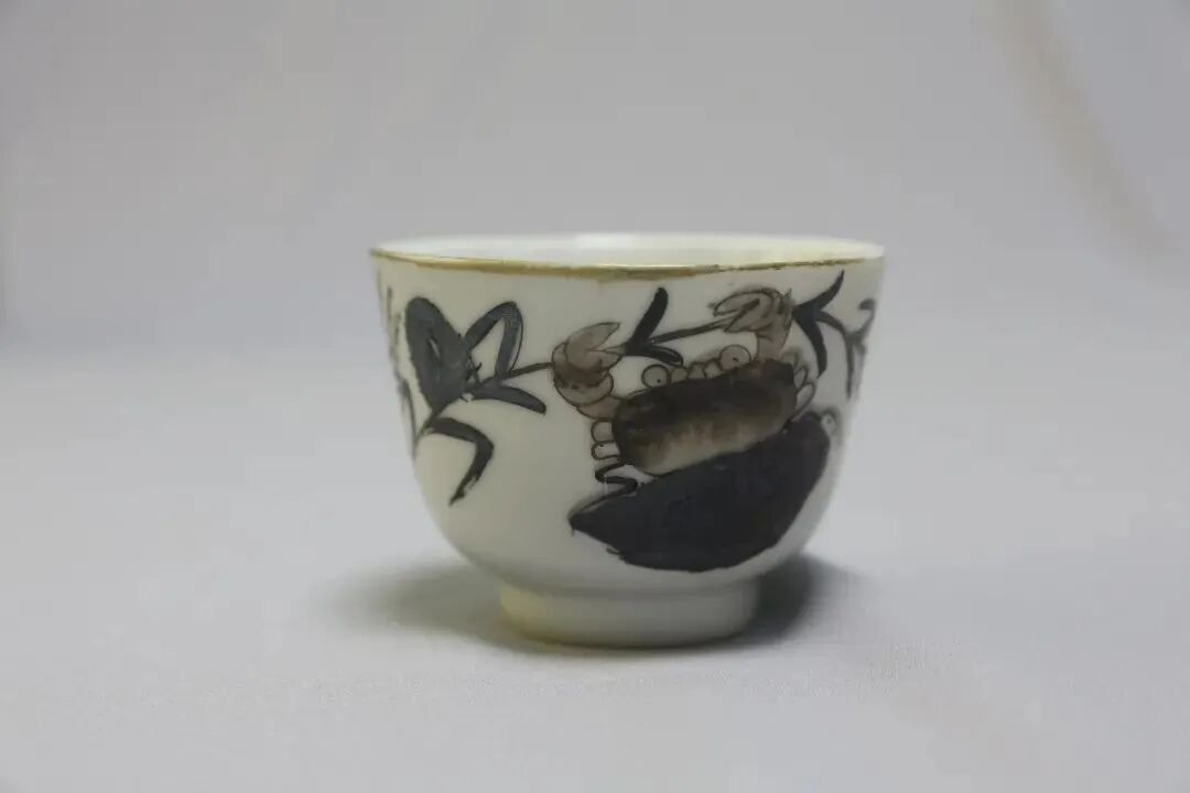 ▲上海市文物保护研究中心6日公布一批长江口二号古船出水文物,包括“二甲传胪图”杯、“吹绿”釉瓷等。